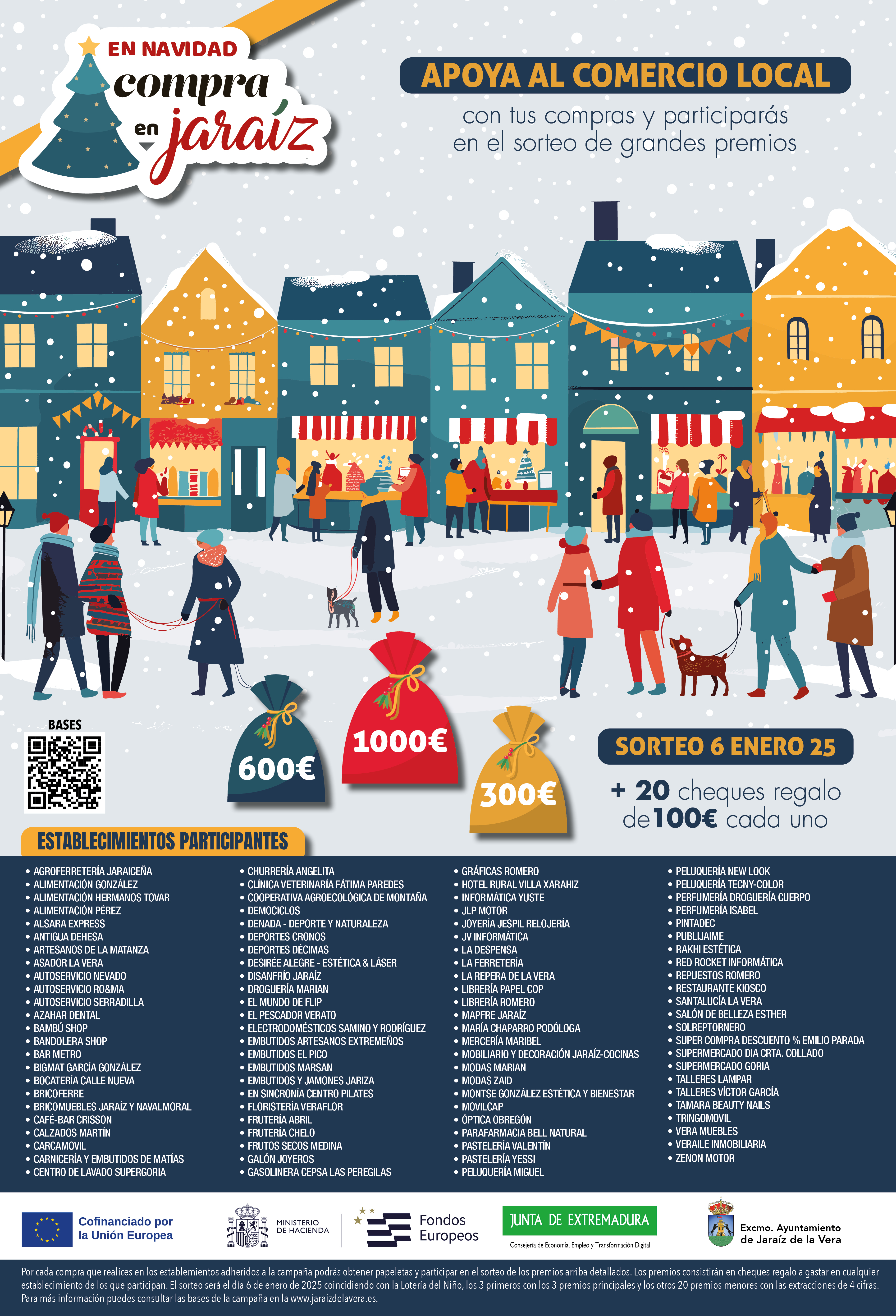 El Excelentísimo Ayuntamiento de Jaraíz de la Vera, convoca la campaña de EN NAVIDAD COMPRA EN JARAIZ 2024 que se regirá de acuerdo con las bases del fichero adjunto