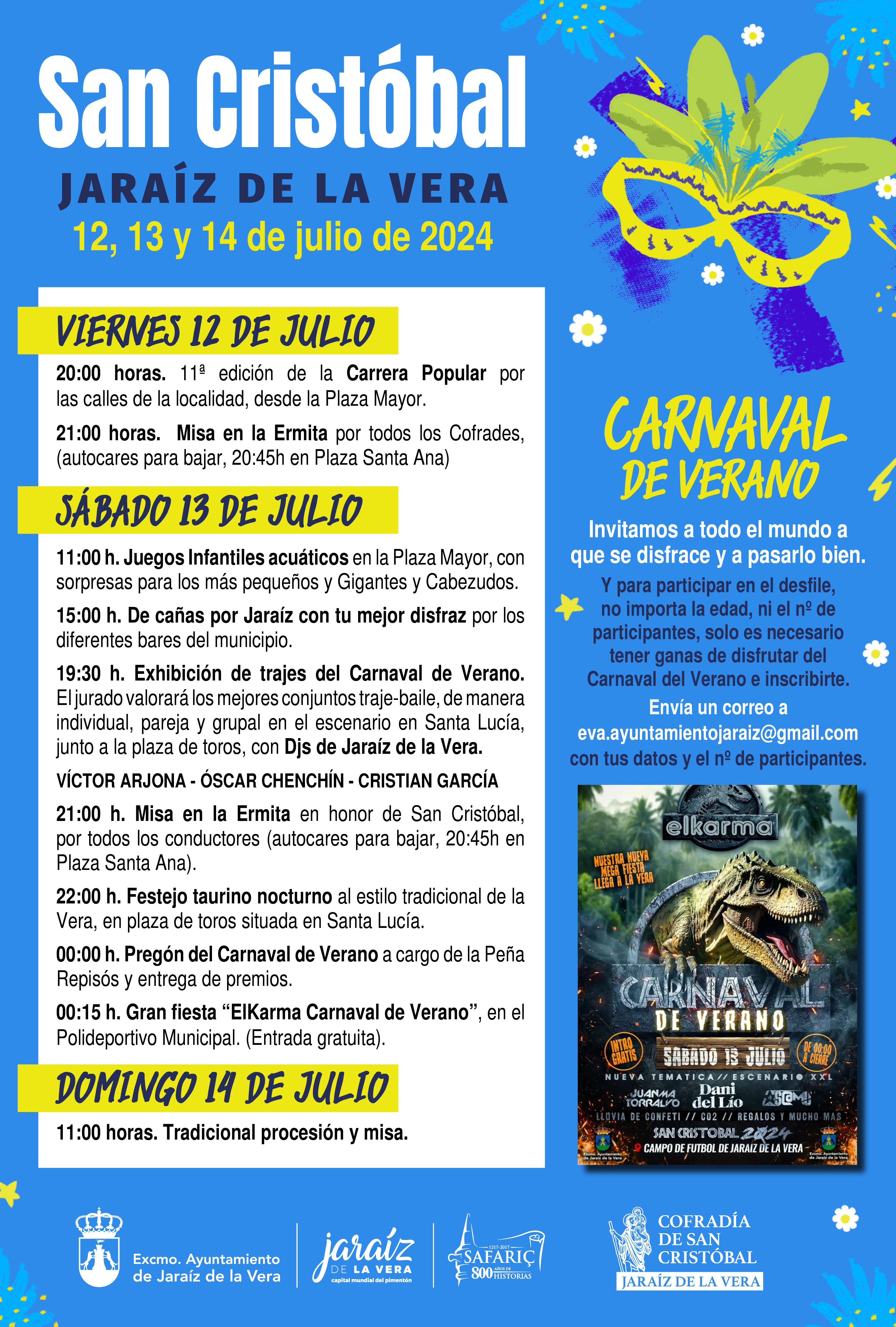 00:15 h. Gran fiesta “ElKarma Carnaval de Verano”, en el Polideportivo Municipal. (Entrada gratuita).