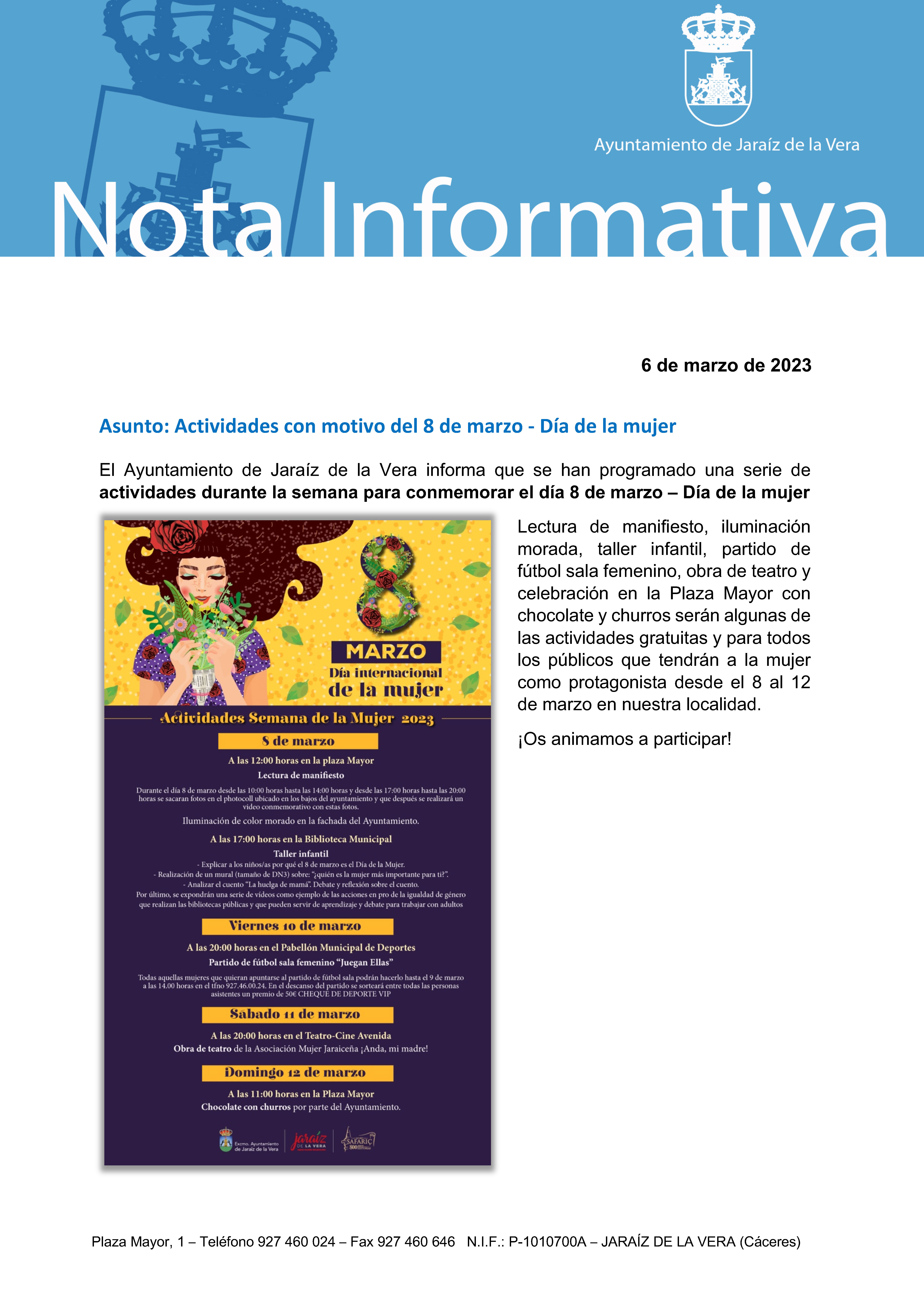 Actividades con motivo del 8 de marzo - Día de la mujer 06 marzo 2023 Documentos 20230306_nota prensa programacion dia mujer.pdf (pdf 1,5 MB)