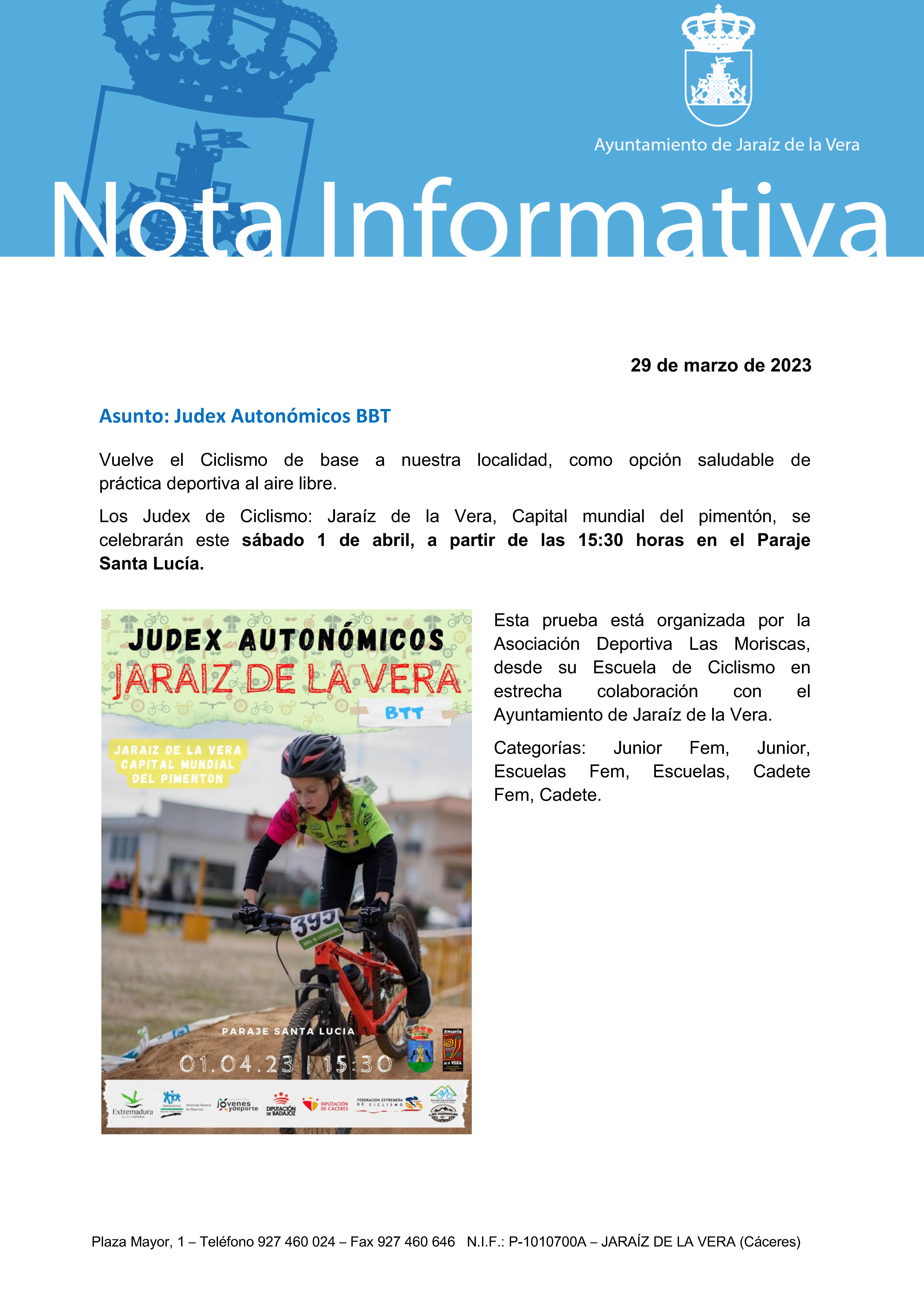 Judex Autonómicos BBT, sábado 1 de abril, a partir de las 15:30 horas en el Paraje Santa Lucía. 29 marzo 2023 Documentos 20230329_nota prensa Judex de BBT.pdf (pdf 1,6 MB)