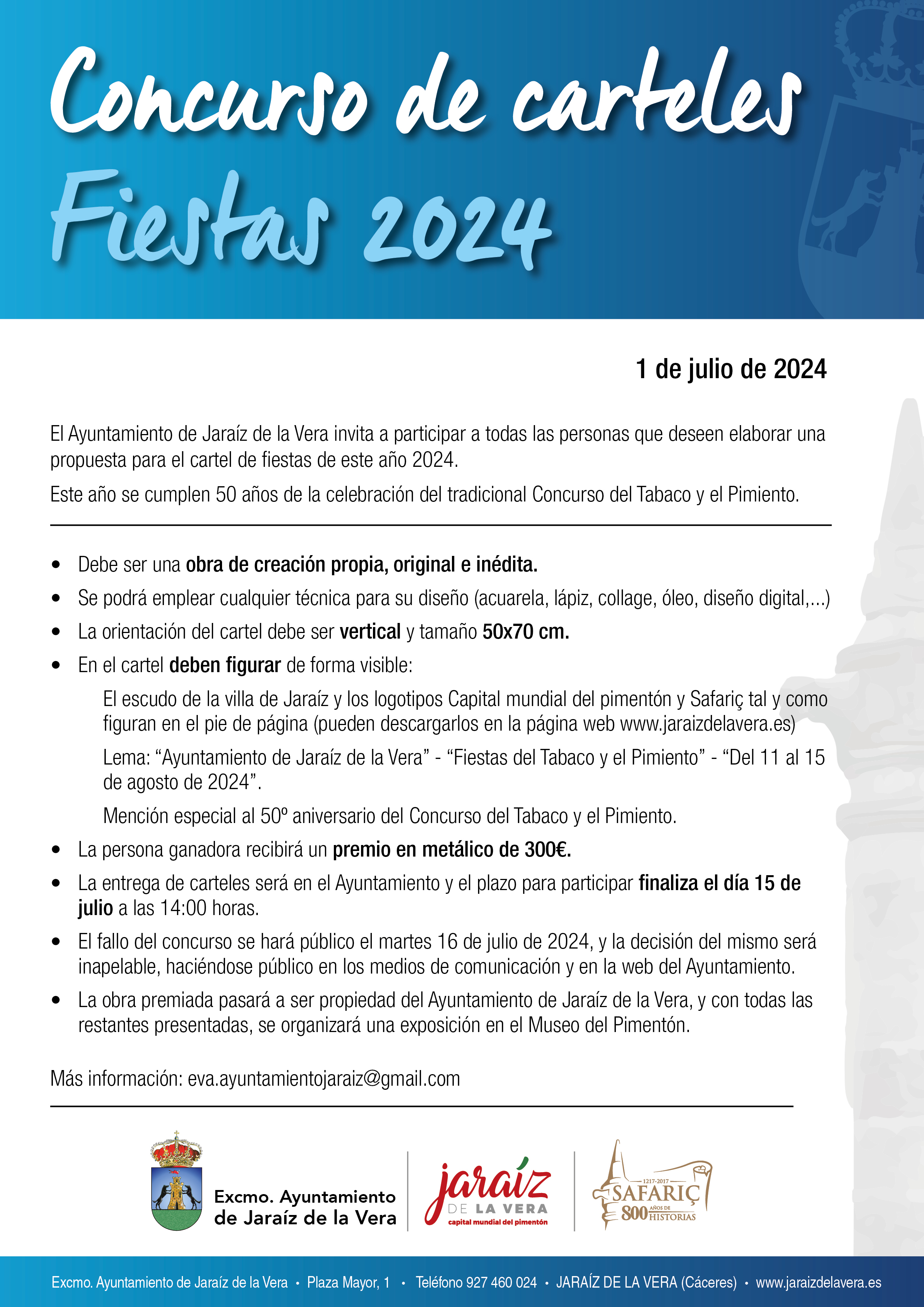 - Lema: “Ayuntamiento de Jaraíz de la Vera” - “Fiestas del Tabaco y el Pimiento” - “Del 11 al 15 de agosto de 2024”.