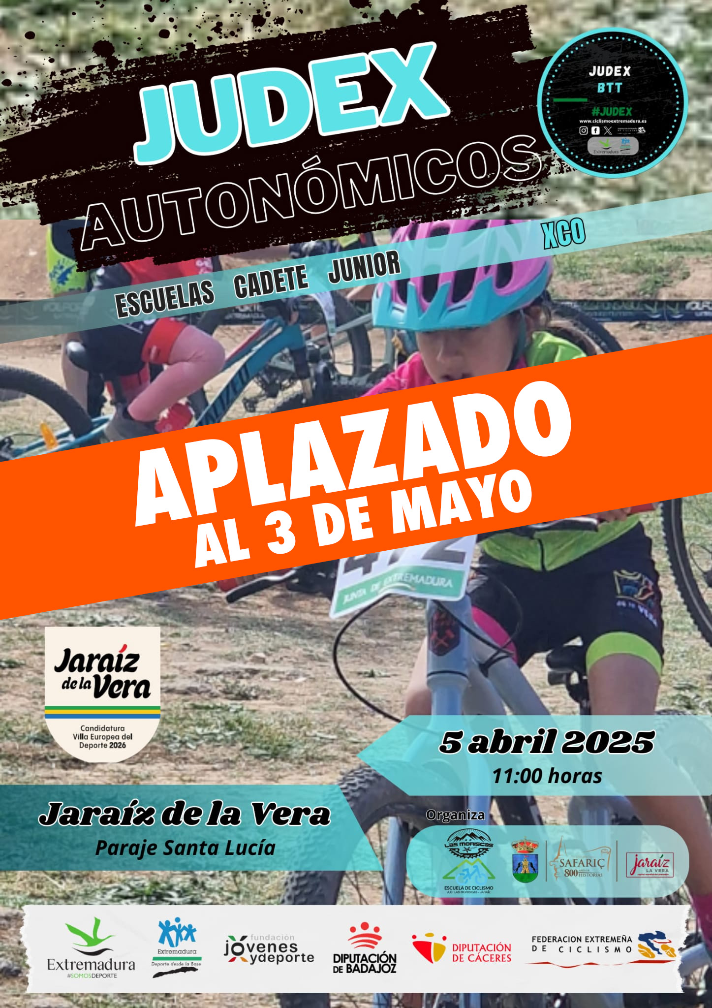 JUDEX BBT: Aplazado al 3 de mayo por la previsión de lluvias 03 abril 2025 Debido al mal tiempo previsto para el sábado, los JUDEX BBT quedan aplazados y pasarán a celebrarse el sábado día 3 de mayo.