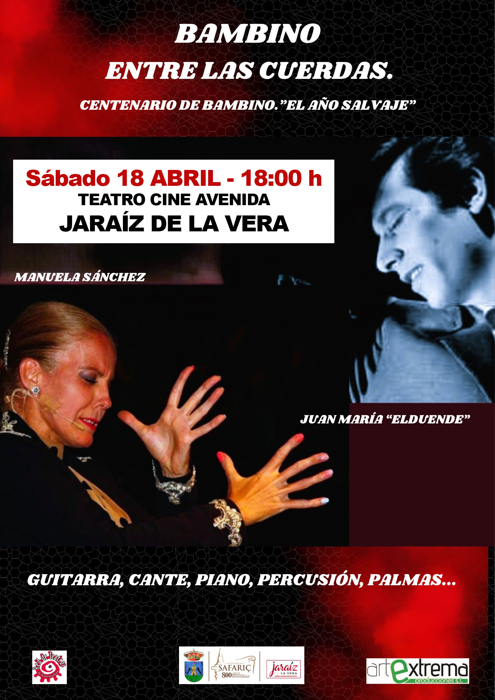 El Ayuntamiento de Jaraíz de la Vera informa que, este sábado 18 de abril, el Teatro Cine Avenida acogerá el espectáculo flamenco “Bambino entre las cuerdas”