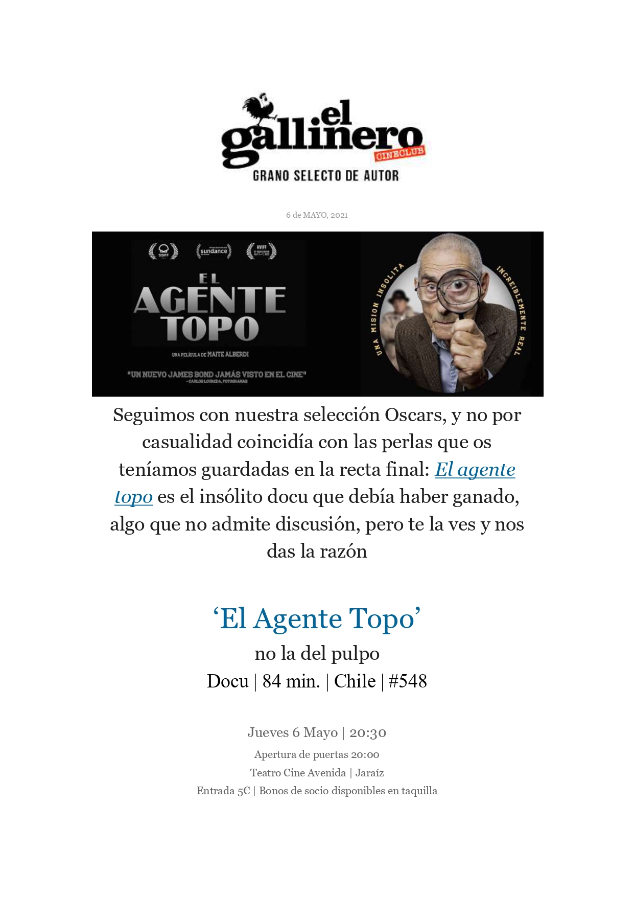 CINE CLUB EL GALLINERO - 6 DE MAYO 2021
