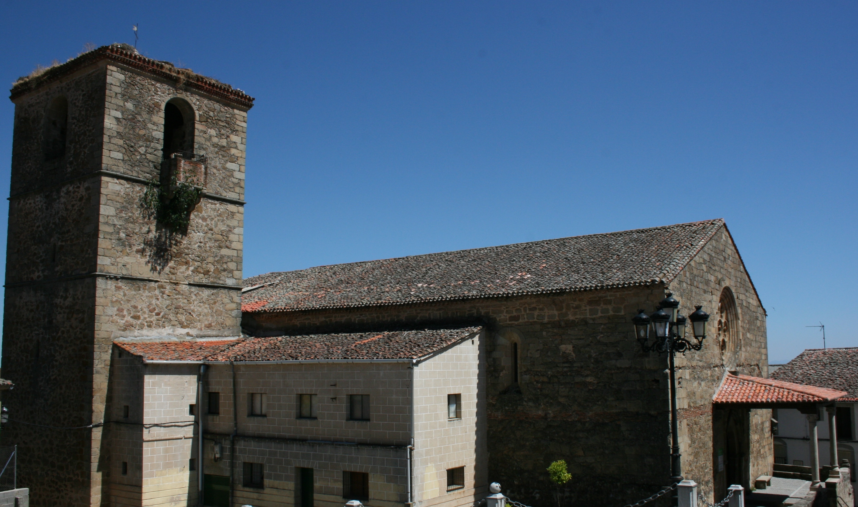Obra del siglo XV, declarada Monumento Histórico-Artístico, que culmina en el siglo XVI. Cabe resaltar la magnífica portada del lado de la epístola, calificado como uno de los mejores ejemplares extremeños, de gótico primitivo, aunque fechable en la primera mitad del siglo XV, debido al arco ojival con conopio, puntas de diamante entre las columnillas de las jambas, decoraciones florales, anomalística y humanas. Sin duda, esta iglesia está edificada sobre una anterior de tradición románica. En su interior hay que destacar el interesante retablo barroco, de estilo churrigueresco, con talla interesantes: una correspondiente a la asunción de la virgen, fechable en la década de 1760, y dos a ambos lados, correspondiente a San Pedro y San Pablo, del siglo XVII sobre sendas repisas decoradas con caratulas y en el cuerpo central en lo alto del retablo: un Cristo Crucificado de la primera del siglo XVI.